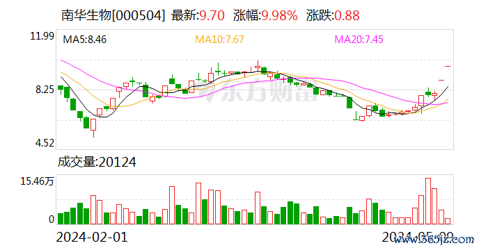 证券时报e公司讯,南华生物(000504)5月9日晚间发布股票交易异常波动公告,近期公司经营情况及内外部经营环境未发生重大变化;目前没有任何应予以披露而未披露的事项;董事会也未获悉公司有应予以披露而未披露的、对公司股票及其衍生品种交易价格产生较大影响的信息;公司前期披露的信息不存在需要更正、补充之处。南华生物股价最近五个交易日三涨停。